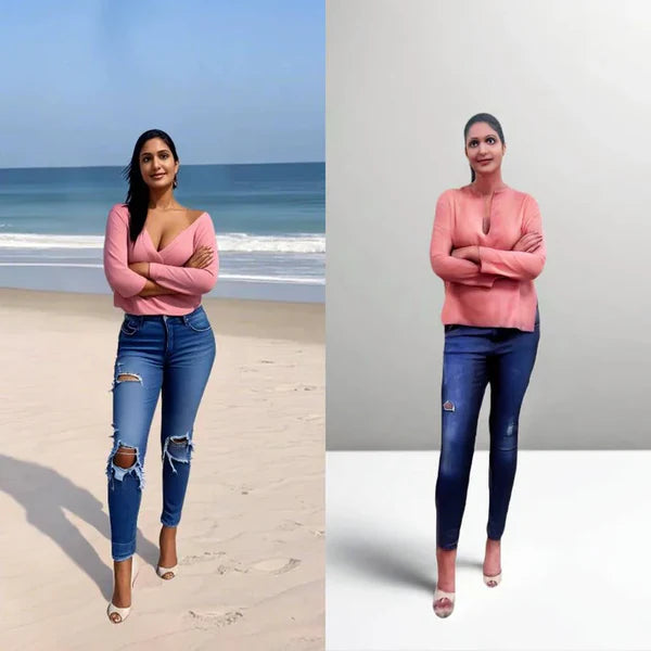 Bei Ganzkörpermodellen bitte keine großen Accessoires wie Rucksäcke oder Taschen einbeziehen.
